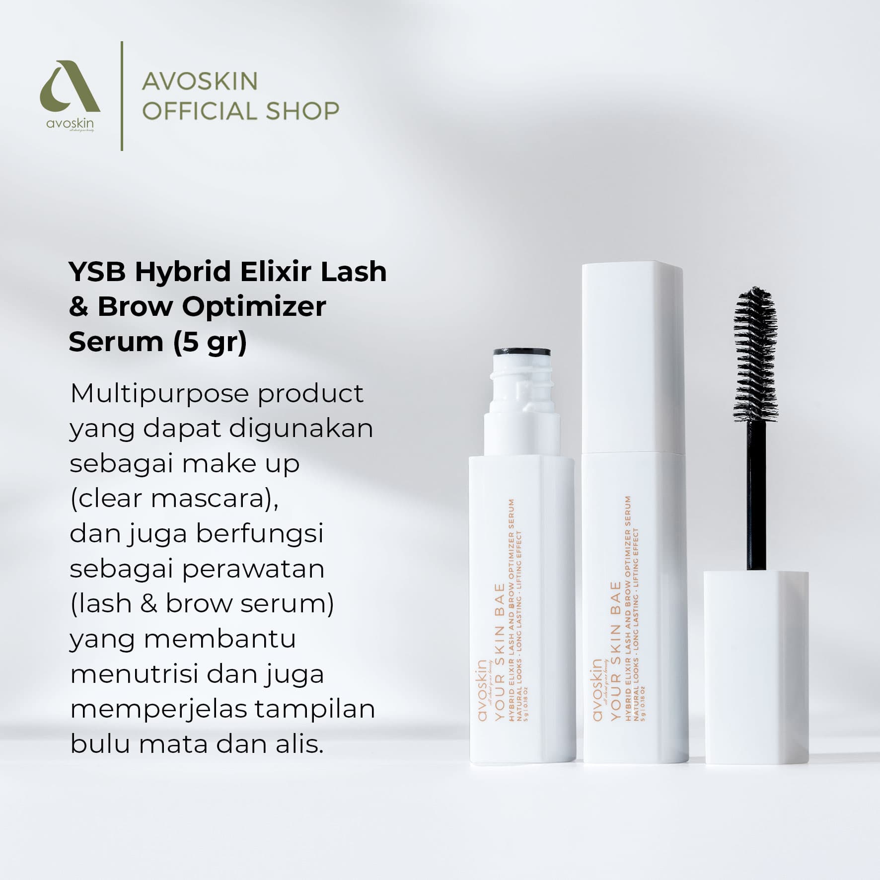 Merupakan multipurpose product yang dapat digunakan sebagai make up (clear mascara), dan juga berfungsi sebagai perawatan (lash & brow serum) yang membantu menutrisi dan juga memperjelas tampilan bulu mata dan alis. Hadir dengan kandungan utama 2% Biotinoyl Tripeptide-1 dan Provitamin B5 Solution, 0.5% Myrothamnus Flabellifolia Leaf/Stem Extract Solution.
